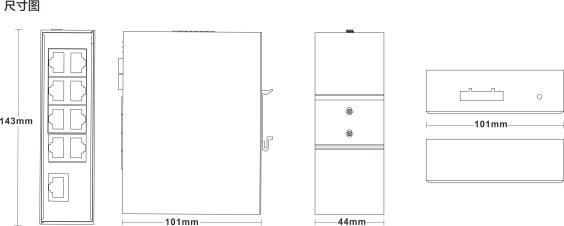 外殼:金屬材質(zhì) 安裝:DIN 卡軌式,壁掛式安裝 重量:0.64Kg 尺寸 :143x 101x 44mm (長 x 寬 x 高) |