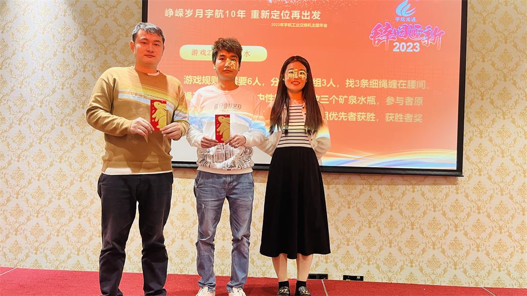 7日17:00整,2023宇航工業交換機主題年會正式開始,時長四個小時,整個過程有夢想,有感動,有感恩,有頒獎,有游戲,有抽獎,整個現場熱火朝天,掌聲雷動。