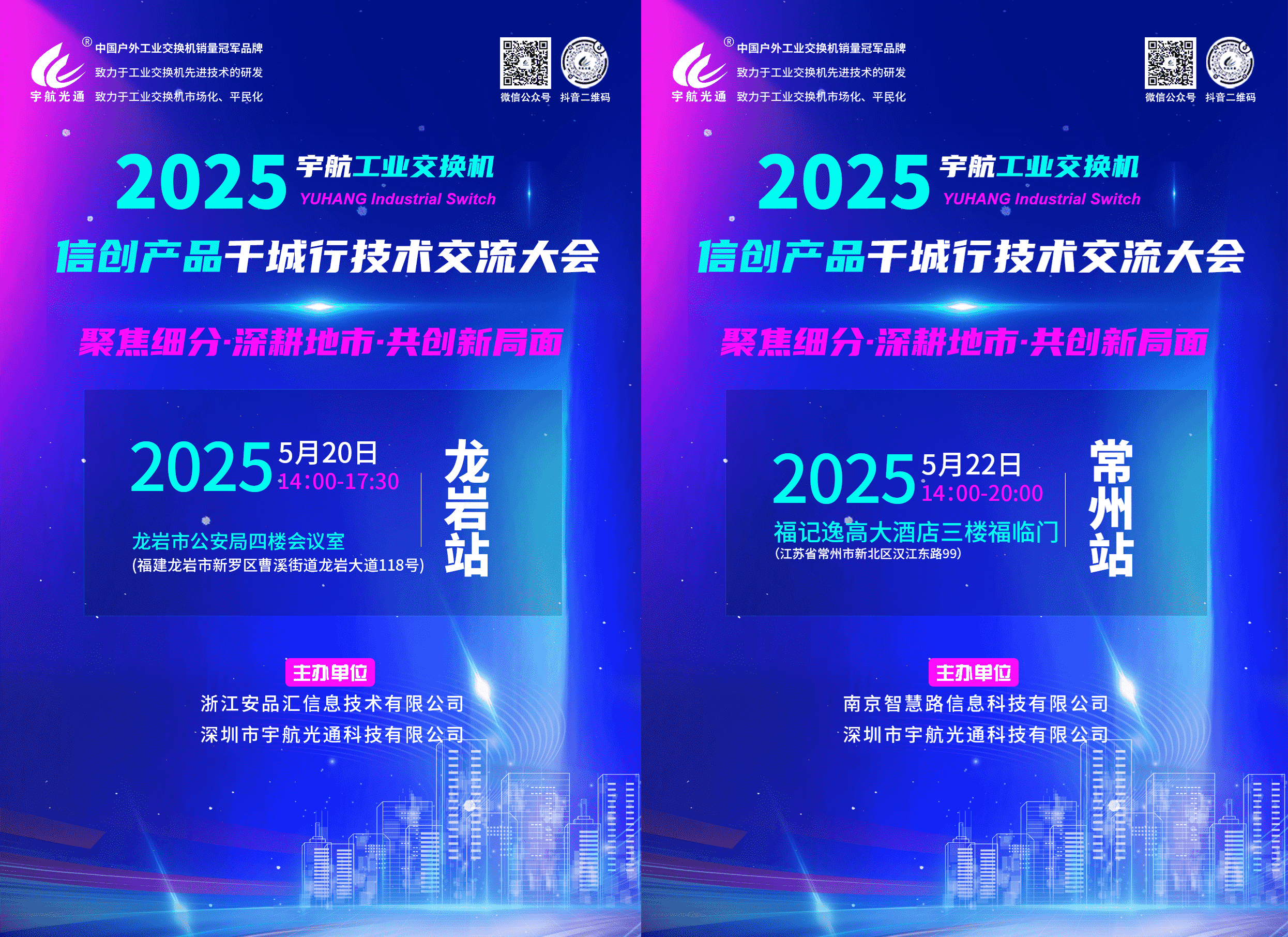 2025年5月13日至17日,宇航工業交換機連續亮相全國多地重要行業展會,包括重慶工業自動化展、2025中國石油石化企業信息技術交流大會、山東水展、四川電力展,同時成功舉辦了千城行江蘇南京站、福建泉州站及福建廈門站系列技術交流活動。作為全國產工業交換機發起單位和中國戶外工業交換機銷量冠軍品牌,宇航工業交換機在七場活動中全面展示了最新推出的全國產系列和飛天鋁合金系列工業交換機產品,宇航技術團隊向與會嘉賓深入解析了面向工業自動化、石油石化、水務管理、電力能源等關鍵領域的創新技術解決方案,充分彰顯了宇航工業交換機在工業通信領域的技術積累與戰略布局。