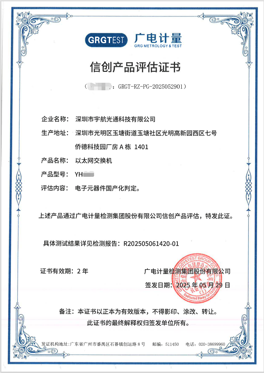 在工業(yè)4.0和智能制造加速發(fā)展的今天,宇航持續(xù)加大研發(fā)投入,先后獲得200余項技術(shù)專利,全面通過ISO9001、ISO14001、ISO45001、CQC,公安部、工信部等多項認(rèn)證,工業(yè)交換機(jī)行業(yè)唯一獲得“國貨之光”榮譽,有幸被《人民日報》、CCTV、新華社等國家權(quán)威媒體報道和推薦。同時也完成了高低溫、防雷、靜電、鹽霧和振動等嚴(yán)苛環(huán)境測試,宇航全國產(chǎn)化系列工業(yè)交換機(jī)產(chǎn)品更是獲得國家信創(chuàng)認(rèn)證,為關(guān)鍵基礎(chǔ)設(shè)施領(lǐng)域提供了安全可靠的通信保障。