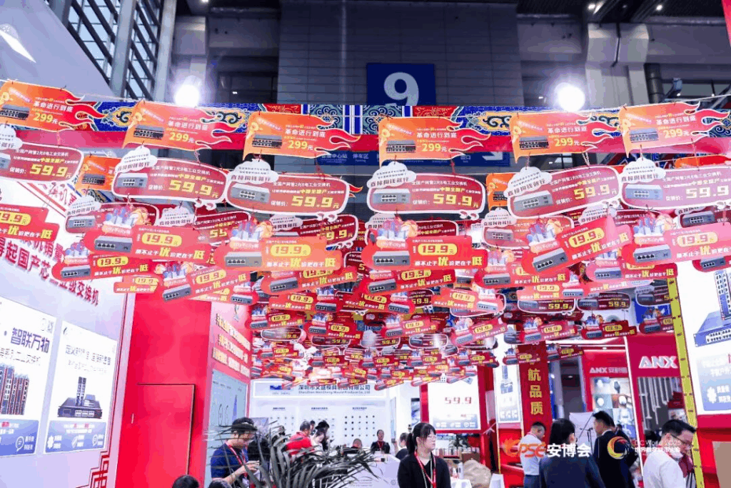 本屆CPSE安博會,宇航展臺憑借獨具特色的“中國紅”主題設計,結合全國產工業交換機爆款特賣,迅速成為全場焦點,人氣與話題度持續攀升。展會期間,宇航重磅發布了全國首臺二層三層全國產核心工業交換機,并同步推出多款創下“歷史低價”的全國產系列產品,一舉引爆現場熱度。現場直接開啟的特價售賣環節,更吸引大量專業觀眾前來咨詢、體驗與采購,展臺一度人流如織,氣氛熱烈。