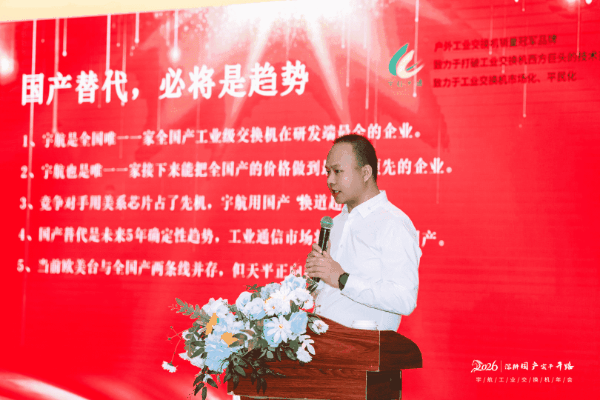 時光不語,歲月如歌。揮別奮進拼搏的2025,我們滿懷憧憬迎來嶄新的2026。在這辭舊迎新的美好時刻,宇航工業(yè)交換機于1月17日在深圳希爾頓花園酒店隆重舉行"深耕國產(chǎn),實干開路"主題年會。