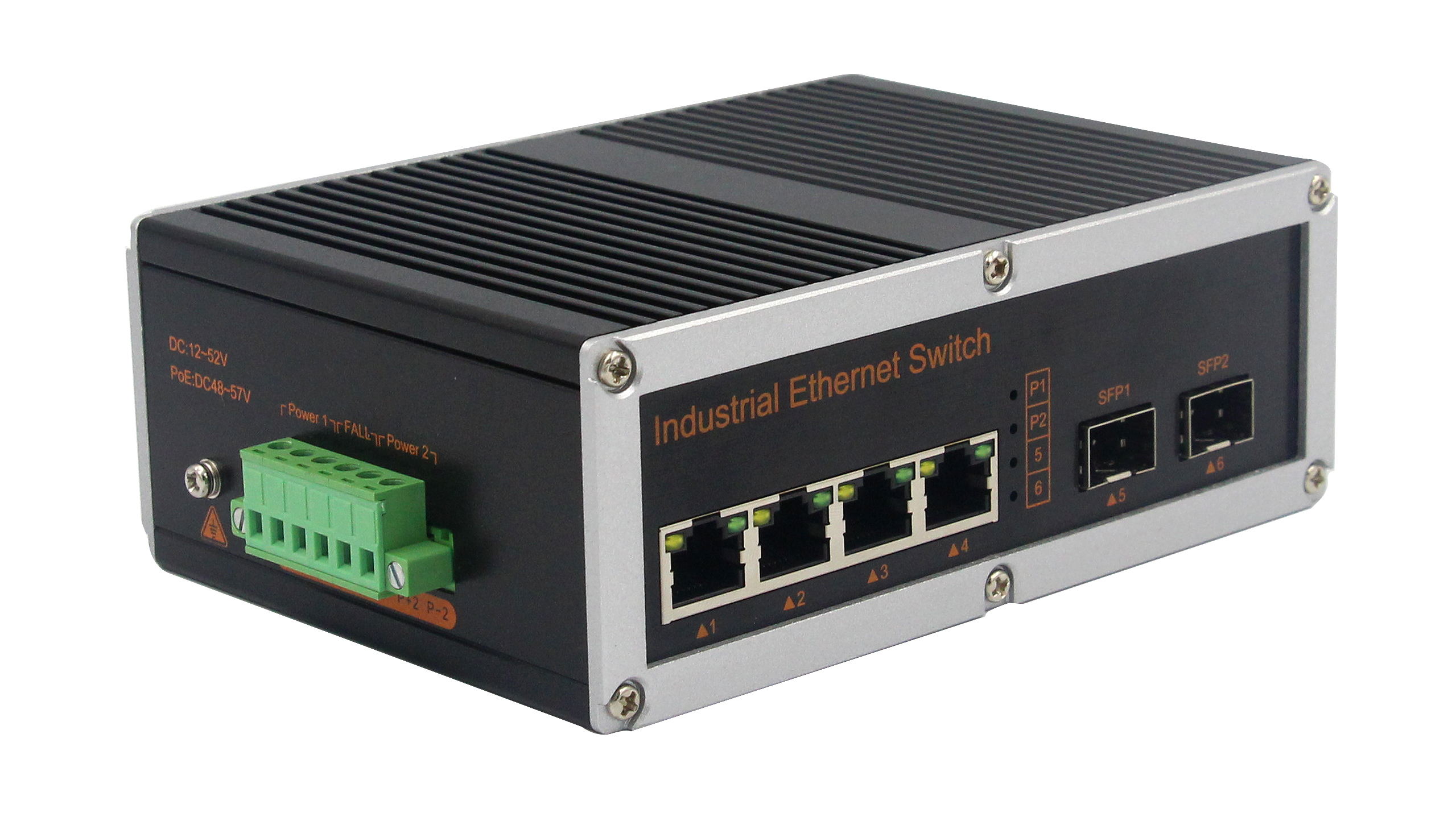 網(wǎng)管型千兆2光4電工業(yè)級以太網(wǎng)交換機,產(chǎn)品符合FCC、CE、ROHS標準。支持2個千兆光口和4個千兆電口,支持一路console口;支持工業(yè)現(xiàn)場所需的以太網(wǎng)二層協(xié)議,保證通信網(wǎng)絡(luò)的穩(wěn)定性;該系列交換機采用低功耗、無風(fēng)扇設(shè)計,確保無噪聲干擾,同時支持-40~85℃工作溫度和良好的EMC電磁兼容性能,保證在惡劣的工業(yè)環(huán)境中保持穩(wěn)定的工作,為工廠自動化,智能交通,視頻監(jiān)控等工業(yè)應(yīng)用領(lǐng)域組建快速穩(wěn)定的網(wǎng)絡(luò)終端接入網(wǎng)絡(luò)提供安全可靠的解決方案。護等級的外殼及 LED 指示燈,使之成為一個即插即用的工業(yè)級設(shè)備,為用戶的以太網(wǎng)設(shè)備聯(lián)網(wǎng)提供可靠、便捷的解決方案。