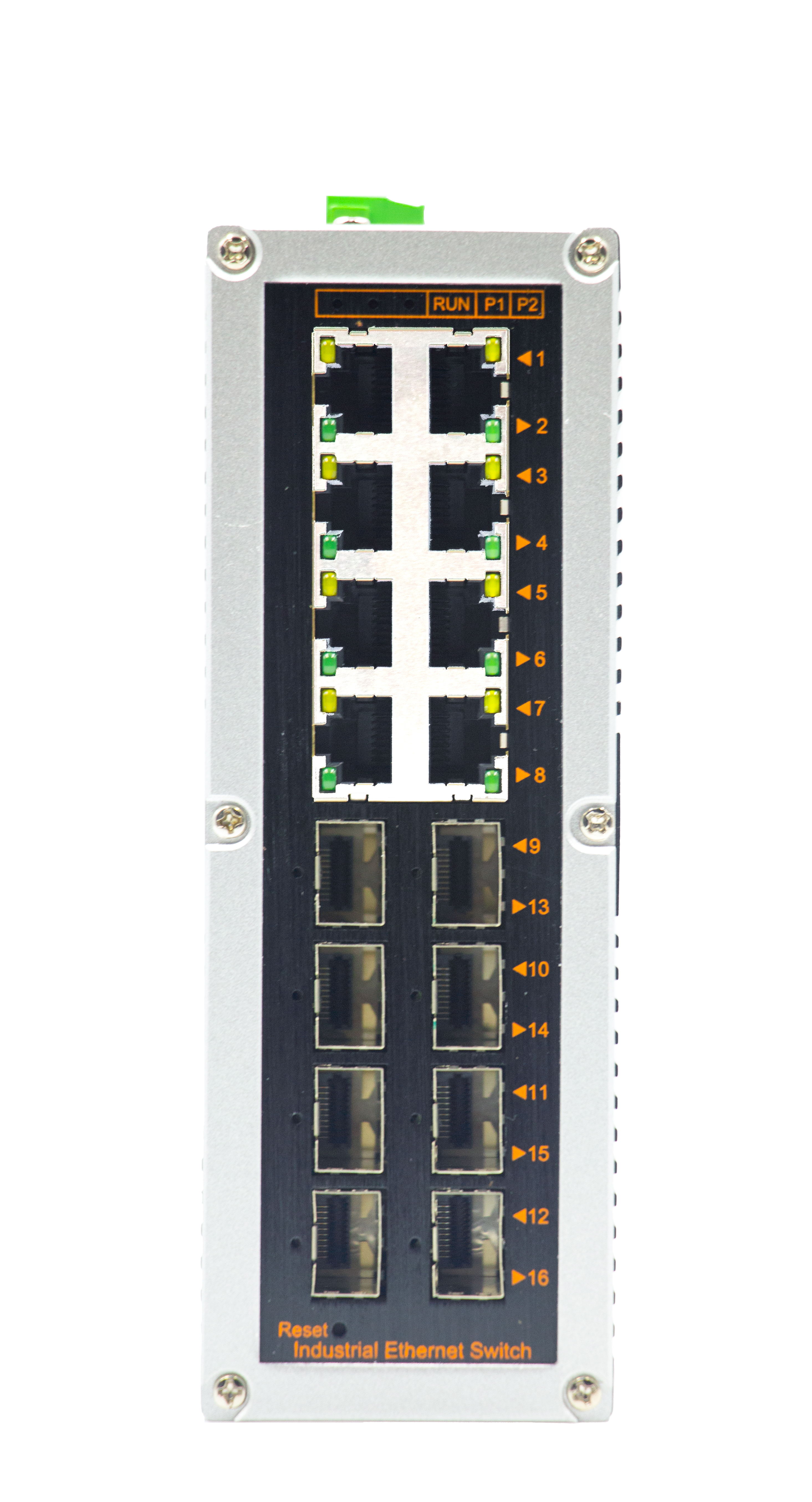 網(wǎng)管型千兆8光8電YH600-88GS-M-SFP工業(yè)以太網(wǎng)交換機,產(chǎn)品符合FCC、CE、ROHS標準。支持8個千兆光口和8個千兆電口,支持一路console口;支持工業(yè)現(xiàn)場所需的以太網(wǎng)二層協(xié)議,保證通信網(wǎng)絡(luò)的穩(wěn)定性;該系列交換機采用低功耗、無風扇設(shè)計,確保無噪聲干擾,同時支持-40~85℃工作溫度和良好的EMC電磁兼容性能,保證在惡劣的工業(yè)環(huán)境中保持穩(wěn)定的工作,為工廠自動化,智能交通,視頻監(jiān)控等工業(yè)應用領(lǐng)域組建快速穩(wěn)定的網(wǎng)絡(luò)終端接入網(wǎng)絡(luò)提供安全可靠的解決方案。護等級的外殼及 LED 指示燈,使之成為一個即插即用的工業(yè)級設(shè)備,為用戶的以太網(wǎng)設(shè)備聯(lián)網(wǎng)提供可靠、便捷的解決方案。