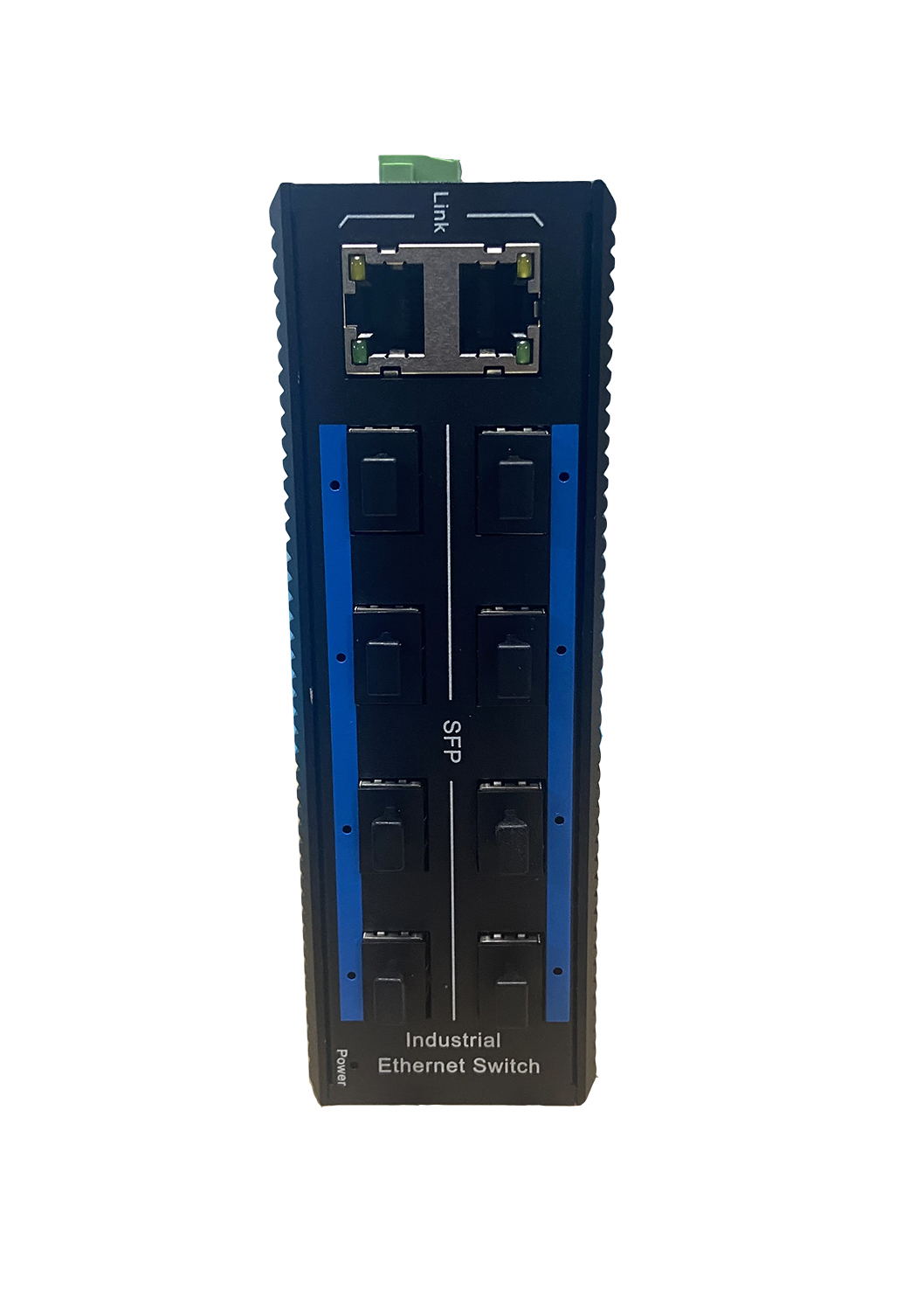8個(gè)千兆光+2個(gè)千兆電、SFP接口(不含光模塊)、導(dǎo)軌式、DC12-52V供電-寬溫(-40℃-85℃)