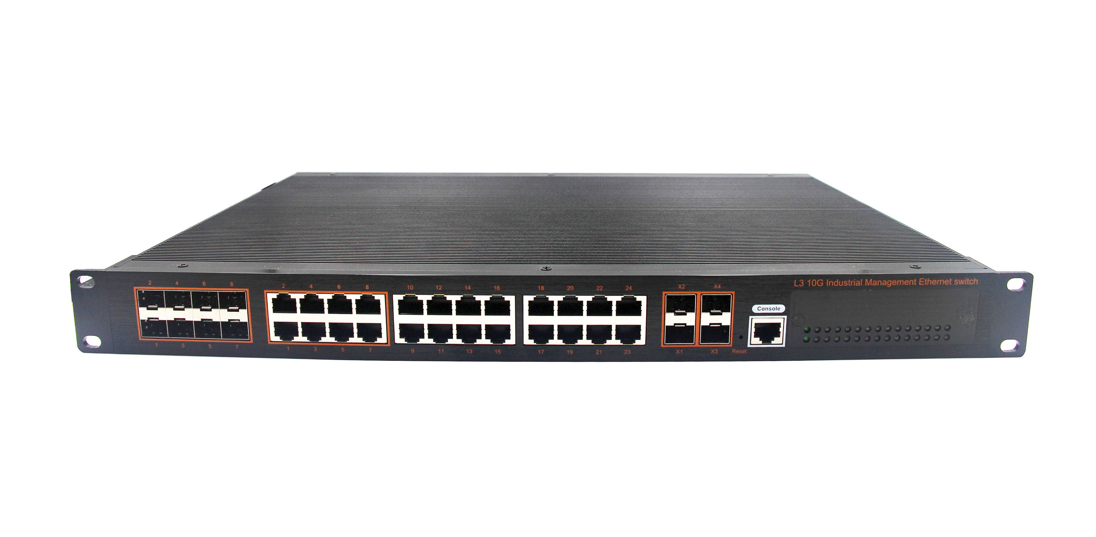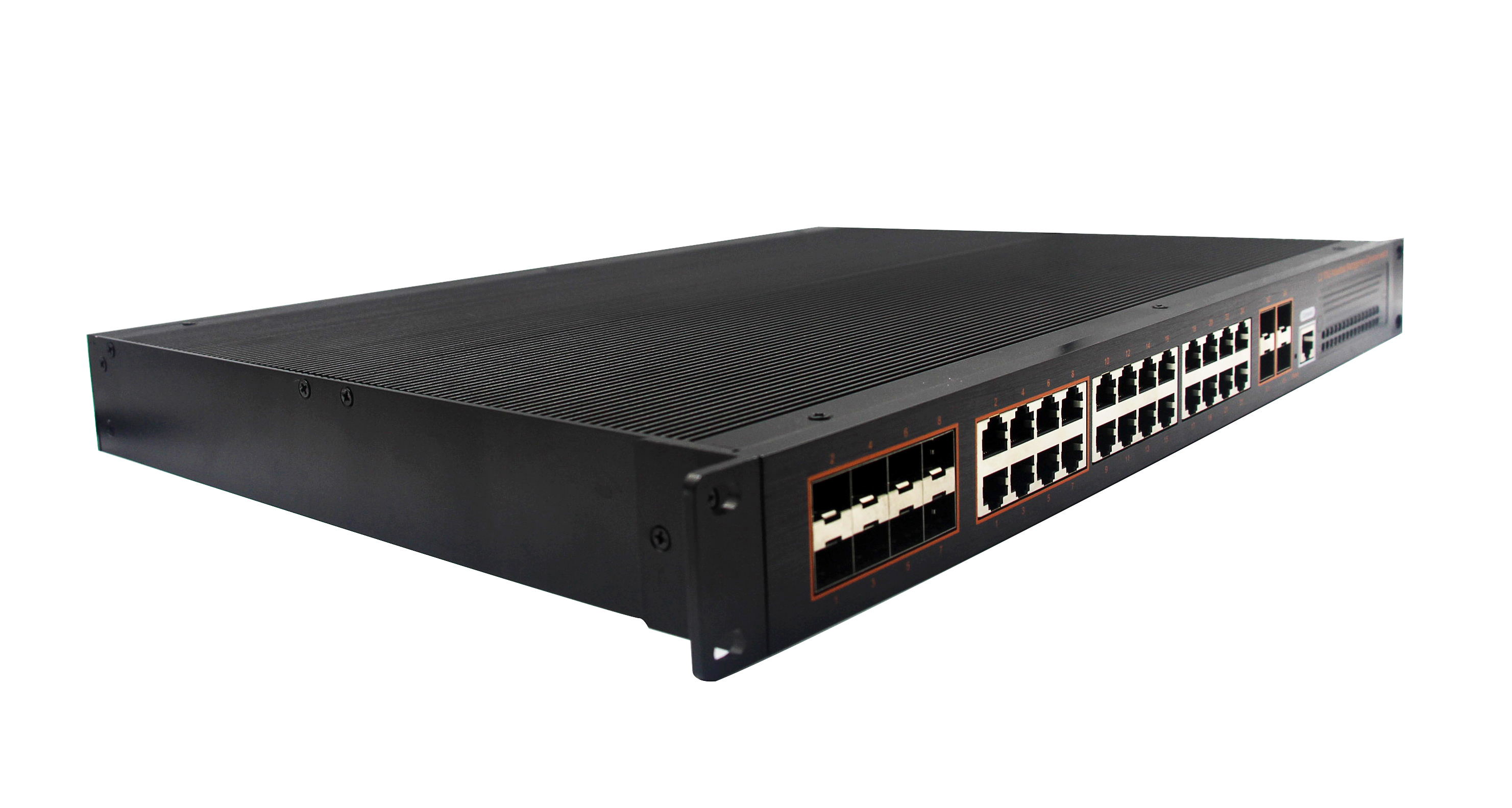 24千兆電+8千兆光+4個萬兆光 萬兆網(wǎng)管型機(jī)架式工業(yè)匯聚交換機(jī)