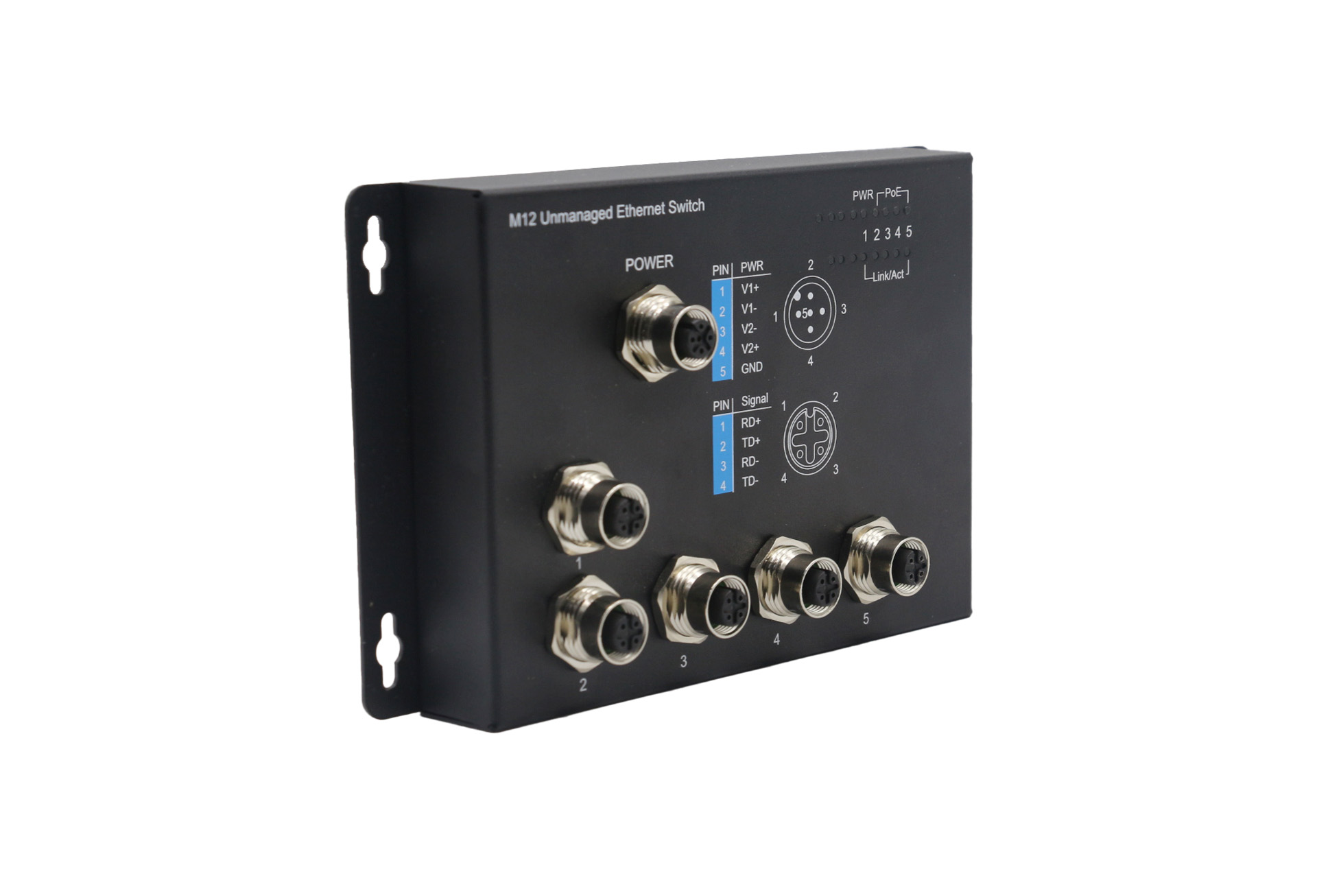YH200-KWL-M12系列非網(wǎng)管型以太網(wǎng)交換機專為工業(yè)應(yīng)用而設(shè)計,使用M12連接器確保緊密、堅固的連接,并保證可靠的抵抗振動和沖擊等環(huán)境干擾。該系列以太網(wǎng)交換機提供5或8個M12以太網(wǎng)端口,支持IEEE802.3/IEEE802.3u/IEEE802.3ab/IEEE802.3x,具有10/100/1000M、全/半雙工、MDI/MDI-X自適應(yīng),并提供經(jīng)濟的解決方案適用工業(yè)以太網(wǎng)。