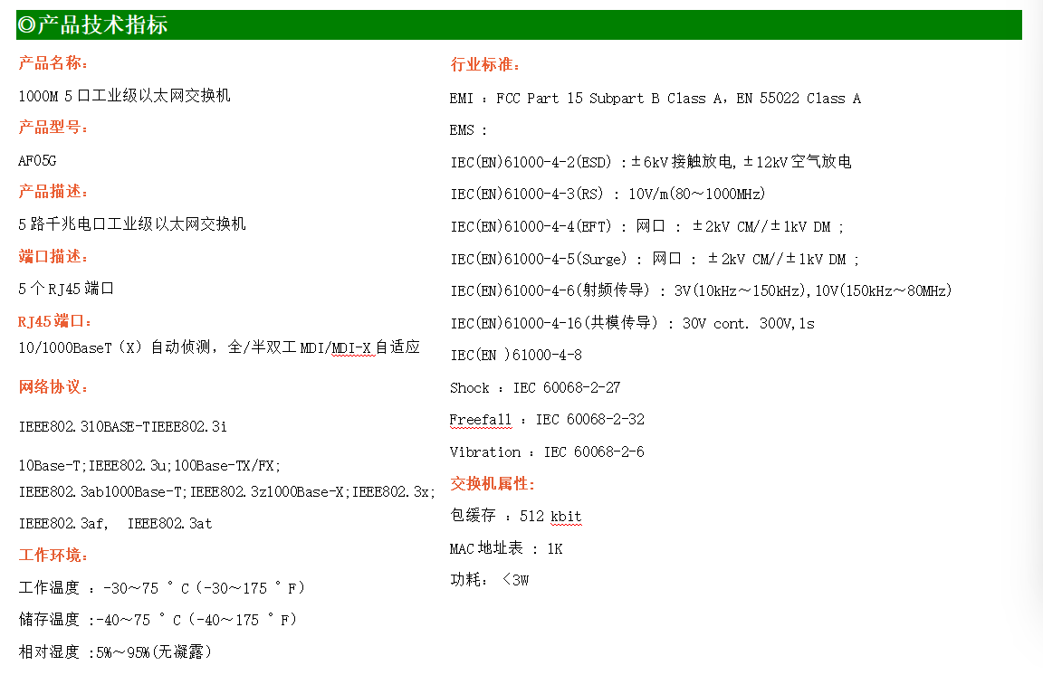 5路千兆電口工業(yè)級(jí)以太網(wǎng)交換機(jī),支持5個(gè)10Base-T/100Base-TX/1000Base-TX電口。產(chǎn)品符合FCC、CE、ROHS標(biāo)準(zhǔn)。AF05G交換機(jī)具有-30℃~75℃的工作溫度,具有超強(qiáng)的堅(jiān)固度能適應(yīng)各種嚴(yán)苛環(huán)境,也可以非常方便的安置在空間緊湊的控制箱中。導(dǎo)軌的安裝特性、寬溫操作及擁有IP40防護(hù)等級(jí)的外殼及LED指示燈,使AF05G成為一個(gè)即插即用的工業(yè)級(jí)設(shè)備,為用戶的以太網(wǎng)設(shè)備聯(lián)網(wǎng)提供可靠、便捷的解決方案。