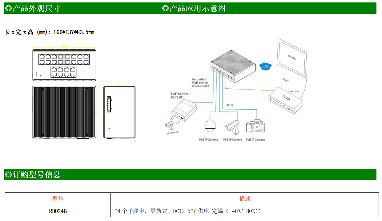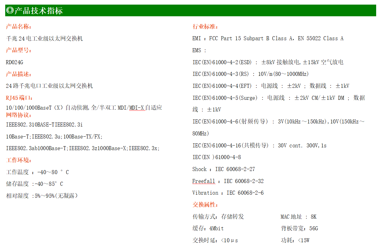 24路千兆電口工業(yè)級(jí)以太網(wǎng)交換機(jī),支持24個(gè)10Base-T/100Base-T/1000Base-TX電口。產(chǎn)品符合FCC、CE、ROHS標(biāo)準(zhǔn)。RD024G交換機(jī)具有-40℃~80℃的工作溫度,具有超強(qiáng)的堅(jiān)固度能適應(yīng)各種嚴(yán)苛環(huán)境,也可以非常方便的安置在空間緊湊的控制箱中。機(jī)架式安裝特性、寬溫操作及擁有IP40防護(hù)等級(jí)的外殼及LED指示燈,使RD224G-SFP成為一個(gè)即插即用的工業(yè)級(jí)設(shè)備,為用戶的以太網(wǎng)設(shè)備聯(lián)網(wǎng)提供可靠、便捷的解決方案。