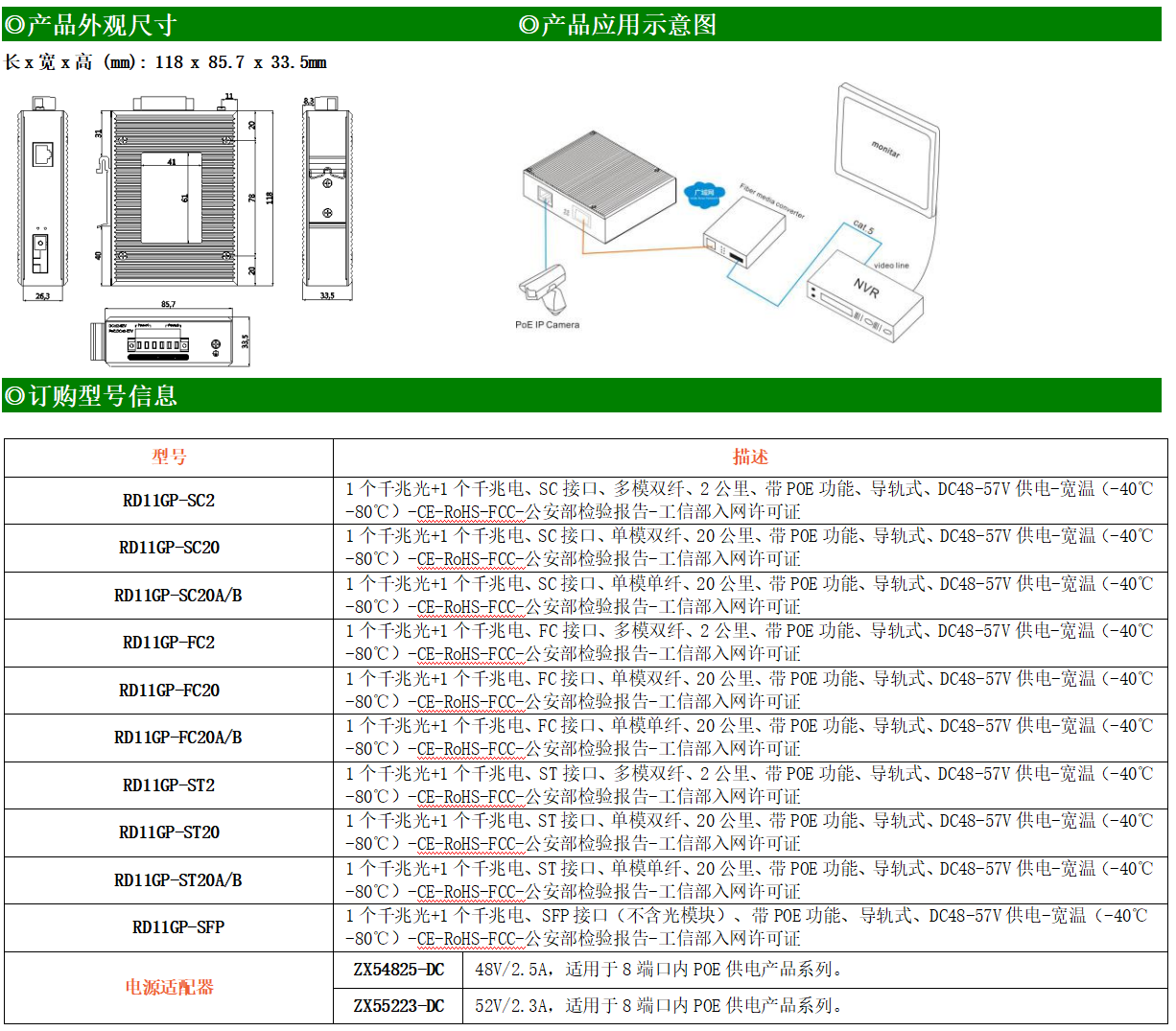 1路千兆POE電口+1路千兆FX光口工業級以太網POE交換機,支持1個10/100Base-TX電口和1個100Base-X光口。產品符合FCC、CE、ROHS標準。RD11GP系列交換機具有-40℃~80℃的工作溫度,具有超強的堅固度能適應各種嚴苛環境,也可以非常方便的安置在空間緊湊的控制箱中。導軌的安裝特性、寬溫操作及擁有IP40防護等級的外殼及LED指示燈,使RD11GP成為一個即插即用的工業級設備,為用戶的以太網設備聯網提供可靠、便捷的解決方案。