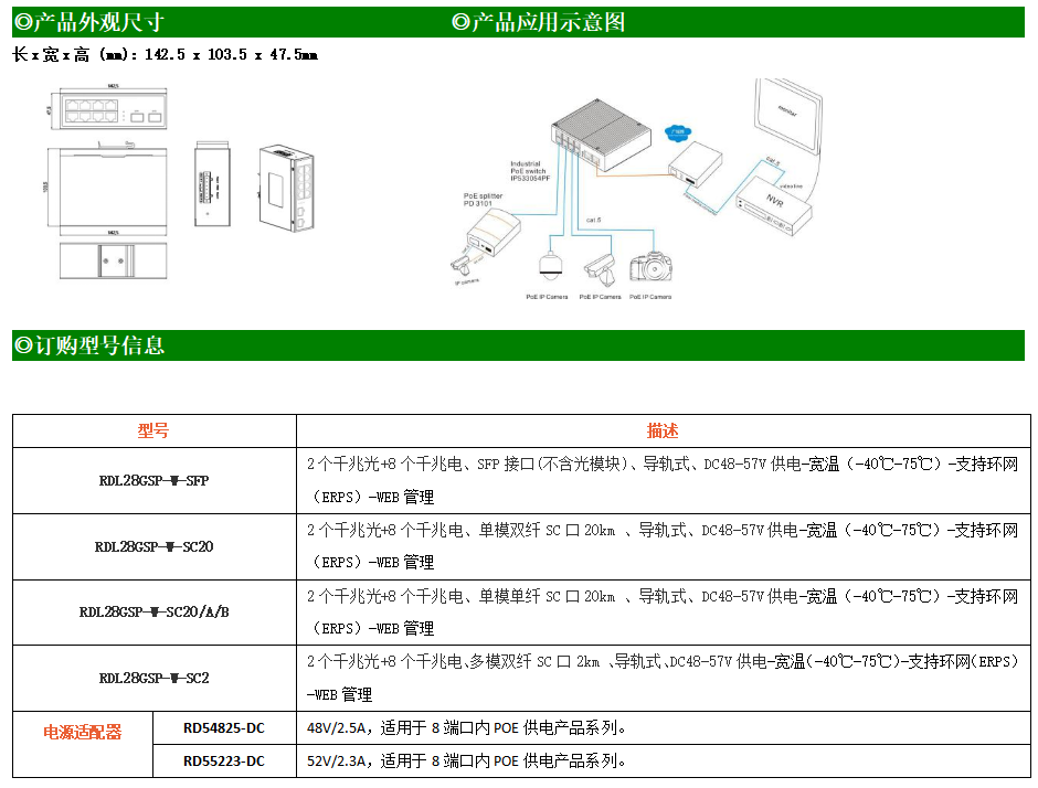 RDL28GS-W-SFP系列WEB網管工業級以太網交換機,產品符合FCC、CE、ROHS標準,支持工業現場所需的以太網二層協議,保證通信網絡的穩定性。該系列交換機采用低功耗、無風扇設計,確保無噪聲干擾,同時支持-40~75℃工作溫度和良好的EMC電磁兼容性能,保證在惡劣的工業環境中保持穩定的工作,為工廠自動化,智能交通,視頻監控等工業應用領域組建快速穩定的網絡終端接入網絡提供安全可靠的解決方案。
