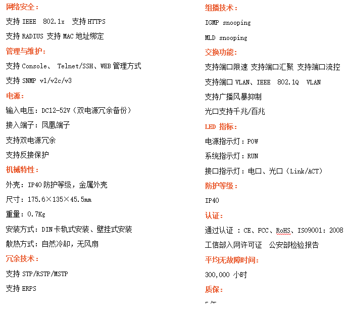 ●支持STP/RSTP/ERPS,SNMPv1/v2/v3,確保網絡安全