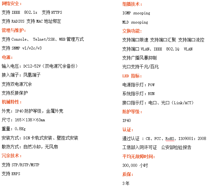 ●支持STP/RSTP/ERPS,SNMPv1/v2/v3,確保網絡安全