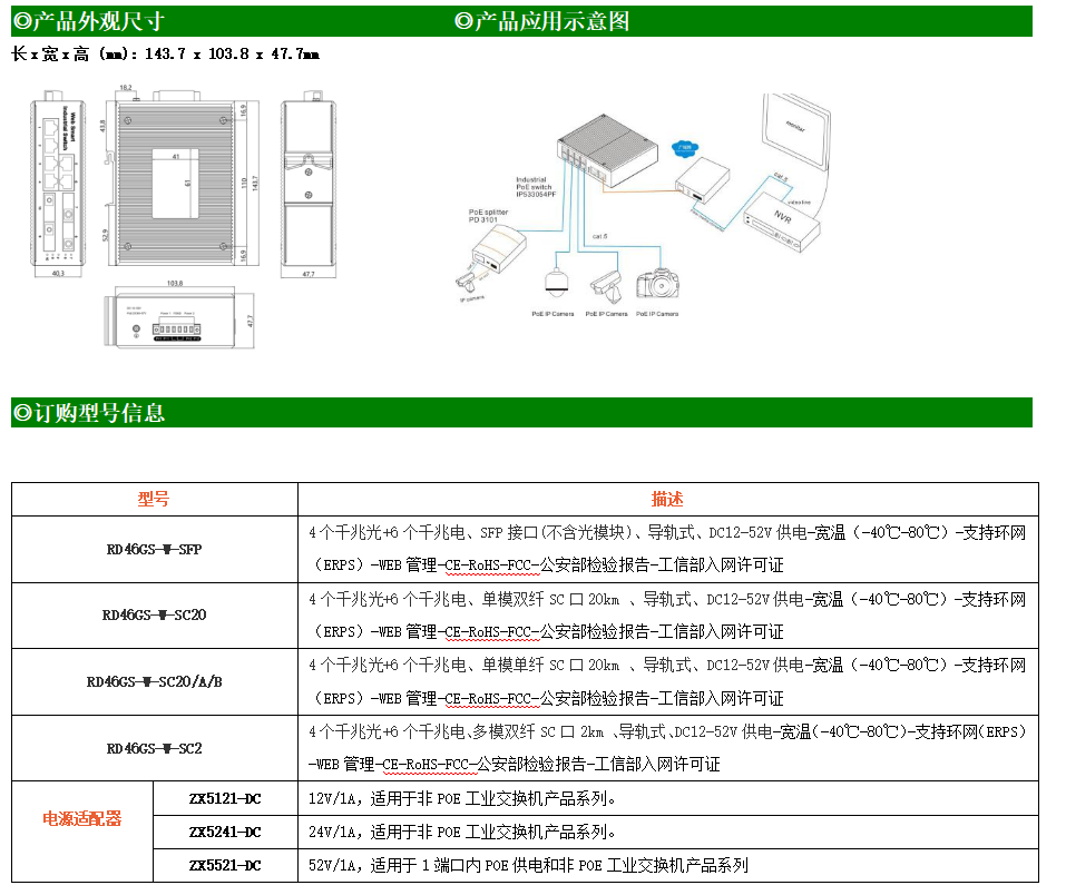 RD46GS-W系列WEB網管工業級以太網交換機,產品符合FCC、CE、ROHS標準,支持工業現場所需的以太網二層協議,保證通信網絡的穩定性。該系列交換機采用低功耗、無風扇設計,確保無噪聲干擾,同時支持-40~80℃工作溫度和良好的EMC電磁兼容性能,保證在惡劣的工業環境中保持穩定的工作,為工廠自動化,智能交通,視頻監控等工業應用領域組建快速穩定的網絡終端接入網絡提供安全可靠的解決方案。