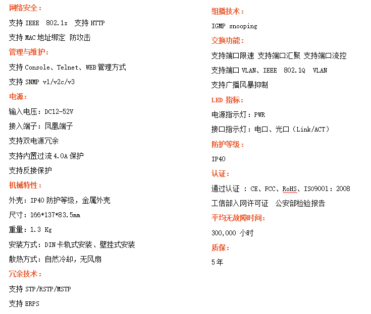 ●管理功能:支持WEB、CLI、SNMP管理方式