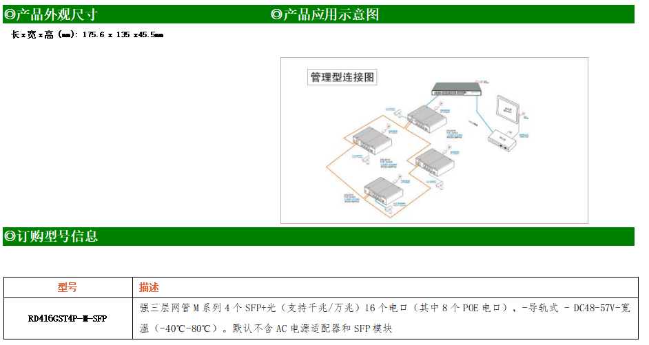 RD416GST4P-M-SFP交換機是我司推出的一款萬兆三層POE交換機,配備4個萬兆SFP+光口+8個10/100/1000M Base-T自適應電口+8個10/100/1000M Base-T自適應POE電口,具備先進的硬件處理能力和最豐富的業務特性。支持IPv4/IPv6 硬件雙棧及線速轉發,使客戶能夠從容應對即將帶來的IPv6 時代其提供高容量的交換能力。RD416GST4P-M-SFP交換機具有-40℃~80℃的工作溫度,具有超強的堅固度能適應各種嚴苛環境。導軌式安裝特性、寬溫操作,使RD416GST4P-M-SFP的交換機成為一個即插即用的工業級設備,為用戶的以太網設備聯網提供可靠、便捷的解決方案。