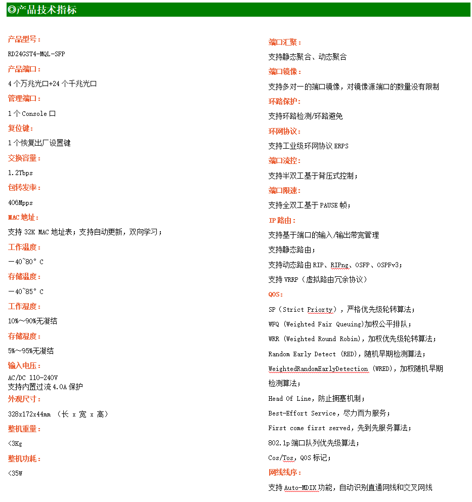 ●網絡冗余:支持STP/RSTP/MSTP,支持ERPS(自愈時間<20ms)