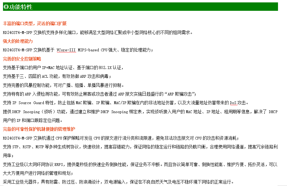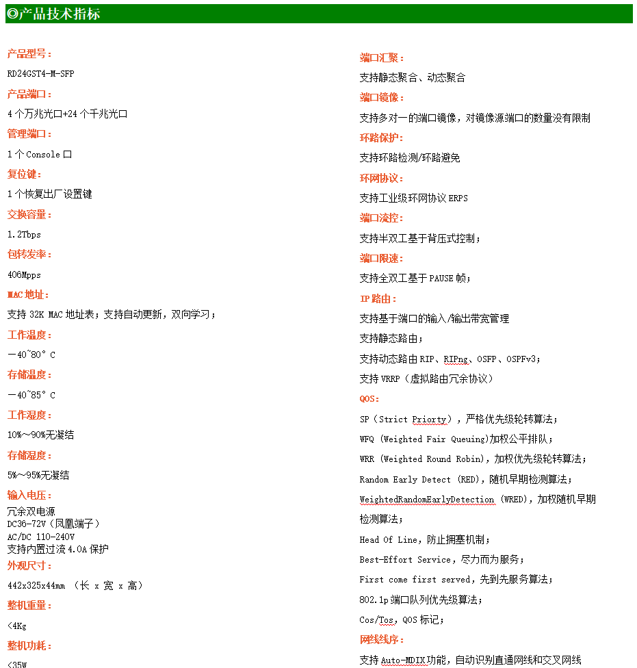 ●網(wǎng)絡(luò)冗余:支持STP/RSTP/MSTP,支持ERPS(自愈時(shí)間<20ms)