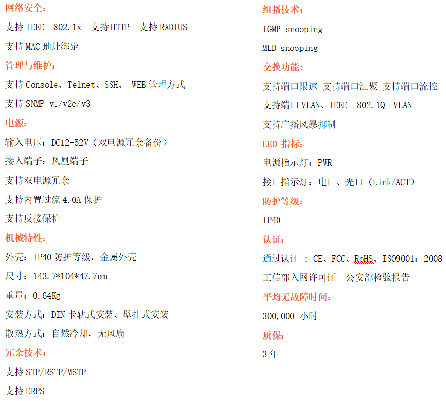 ●支持STP/RSTP/ERPS,SNMPv1/v2/v3,確保網絡安全