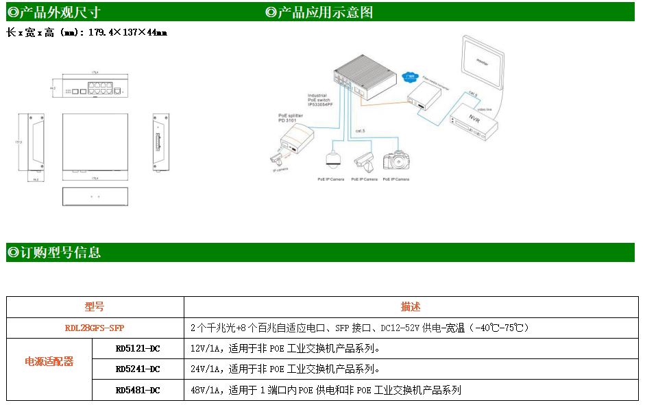RDL28GFS-SFP是網管型工業以太網交換機,產品符合FCC、CE、ROHS標準。支持2個千兆光口和8個百兆電口,支持一路console口;支持工業現場所需的以太網二層協議,保證通信網絡的穩定性;該系列交換機采用低功耗、無風扇設計,確保無噪聲干擾,同時支持-40~75℃工作溫度和良好的EMC電磁兼容性能,保證在惡劣的工業環境中保持穩定的工作,為工廠自動化,智能交通,視頻監控等工業應用領域組建快速穩定的網絡終端接入網絡提供安全可靠的解決方案。
